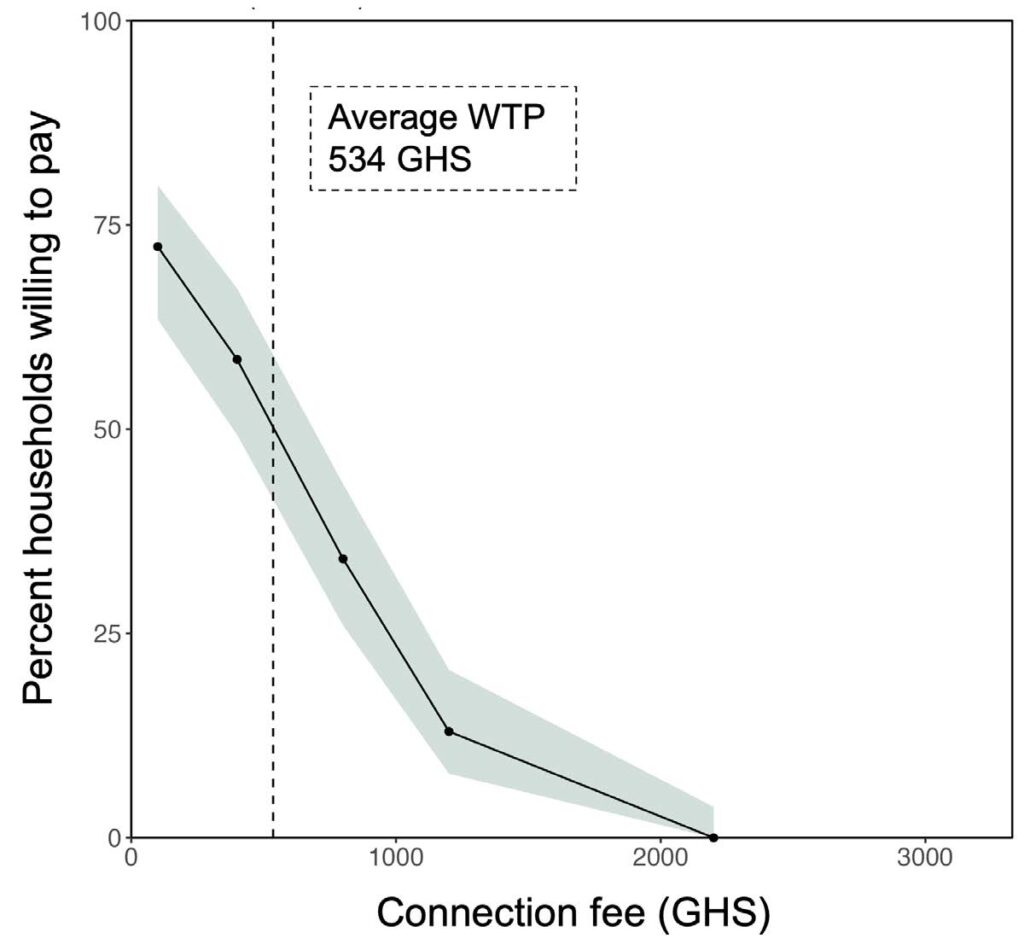 From component 2 (Water Equity and Tariffs): A graph indicating the willingness to pay for Ghana Water Limited’s connection fee among Non-Customers in Kumasi, Ghana (n = 123, Owners Only)